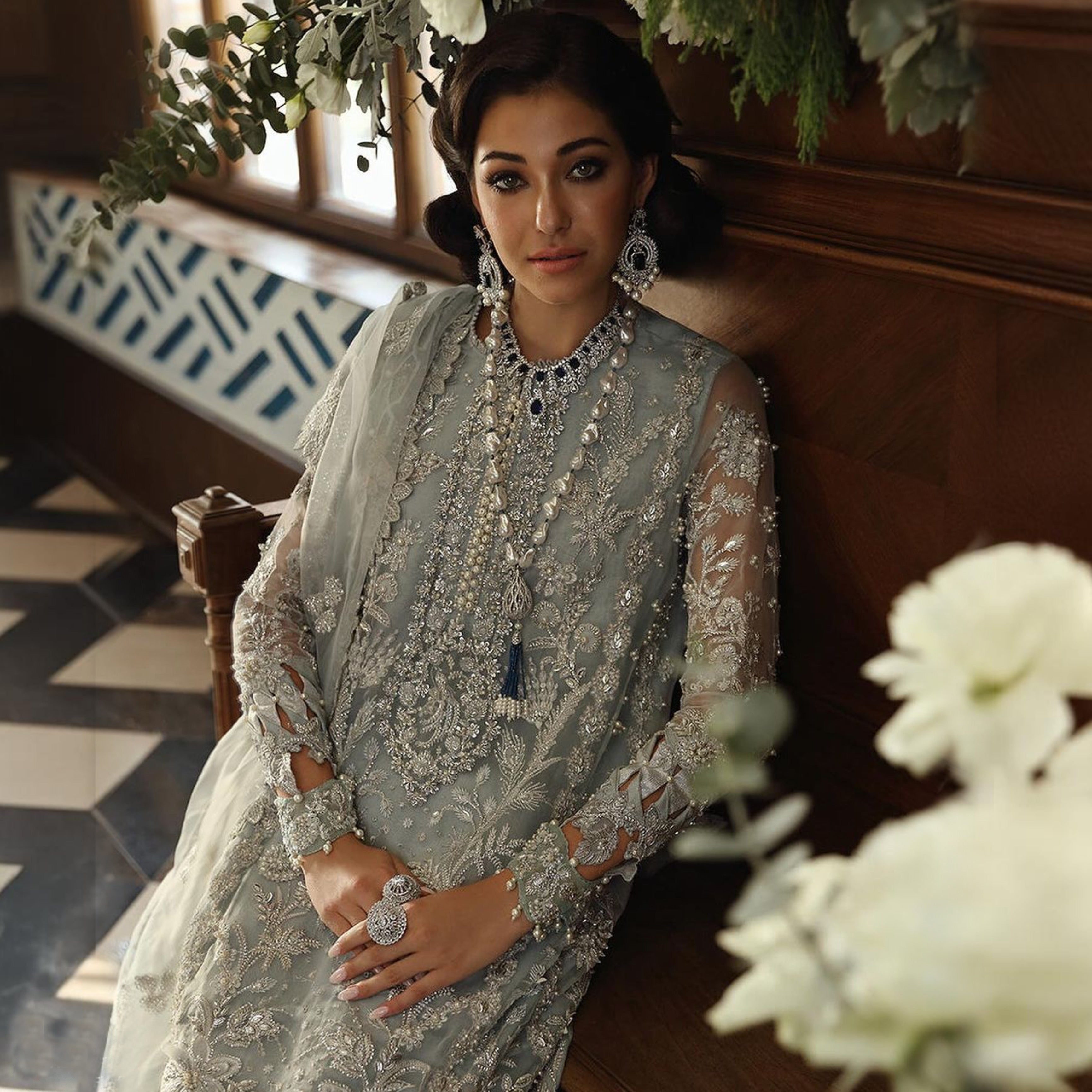 This hand-embellished attire is expertly designed with a seamless fusion of traditional aesthetics and modern style. The dress' serene and mellow shade of grey exudes an aura of understated elegance that will enchant. The hand embellished attire is a genuine work of art, adorned with elaborate and delicate embellishments precisely handcrafted by expert artisans. These embellishments subtly highlight the neckline, sleeves, and front of the dress, adding a sense of glamour and beauty to its overall appearance. It portrays classic elegance and sophistication when worn with contemporary culottes and a stunning dupatta